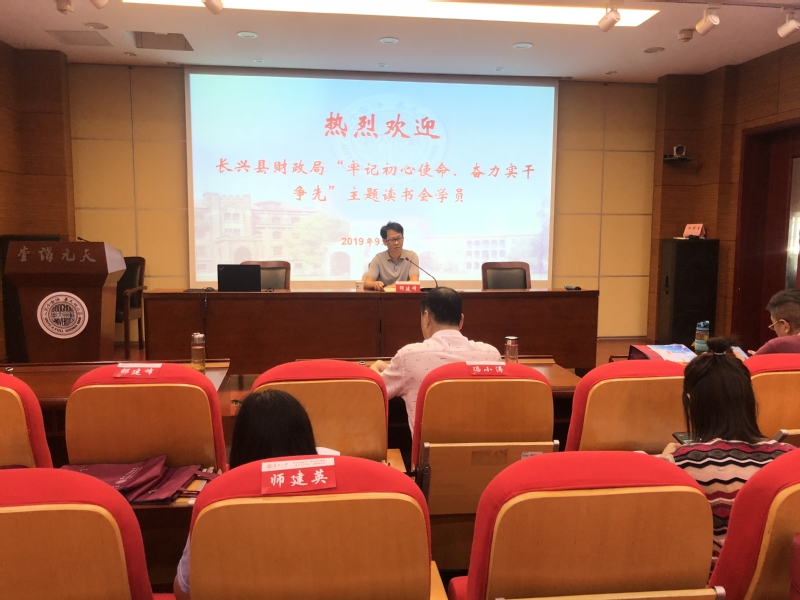 9月8至9月12日,长兴县财政局“牢记初心使命、奋力实干争先”主题读书会在我校黄色仓库 天元讲堂顺利举办。来自长兴县财政局的56位学员参加了此次培训。9月9日上午,长兴县财政局党委委员、正科级组织员,县属国企联合监事会主席邵建峰在上课前做了开班动员讲话。