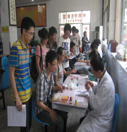 组织同学有序进行献血前的各项体侧项目和补充献血后的应该注意的相关事项,使献血活动快速有效的进行。