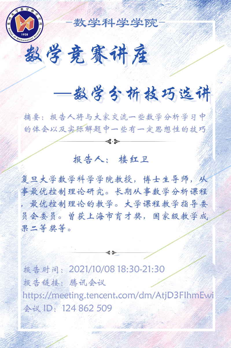 数学竞赛讲座——数学分析技巧选讲(20211007楼红卫)