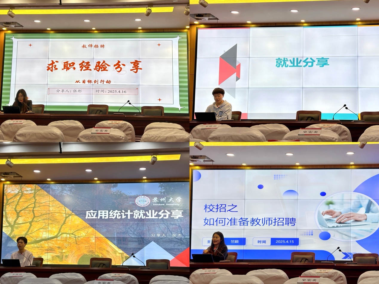 会上,2023级学科教学(数学)的张彤同学带来了教师招聘考试的备考经验,她建议大家明确求职目标,在招聘现场展现自信。2023级应用统计专业的张杰同学分享了应聘企业与考公备考的情况并推荐了学习资源。2022级数学专业的陈龙潜同学分享了常州“优才计划”和江苏普选的招聘经验,提供了备考国考的具体方法。2023级学科教学(数学)专业的竺颖同学详细介绍了教师校招的准备工作,涵盖苏州、无锡等地教师招聘的时间、形式及备考策略并强调了资料管理及备份要点。