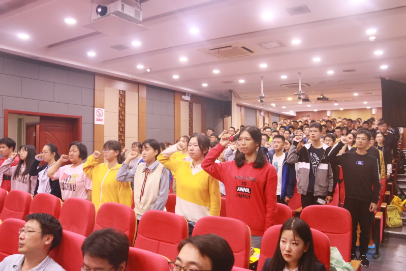 全体新生在曹正宇同学的领誓下,庄严完成了自己的入学宣誓!
