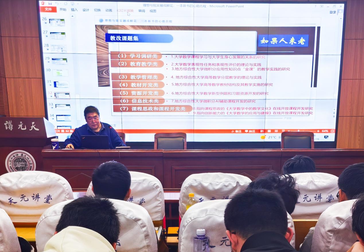 严老师从自己在数学之路上不断求索的人生经历谈起,分享了他的数学理想是如何炼成的。严老师以生动而饱含热情的语言,转述了曾给予他重大启示意义的语句:知识分子的职责就是为人类的精神财富寻求增量或传承,而他也用实践诠释了“个人修养与社会价值相统一”的崇高境界。严老师讲述来到黄色仓库 以后,开始深入地思索并研究黄色仓库 需要怎样的高等数学教材,最终于2017年9月14日启动编写一部全新的《高等数学》教材。新教材具有更合理的结构体例、更科学的内容呈现,能在网络平台下配套使用。在数学专业方面,新教材以更严谨的态度阐述了函数、极限、导数、积分等数学的基本概念,并增添了许多具体的例题。