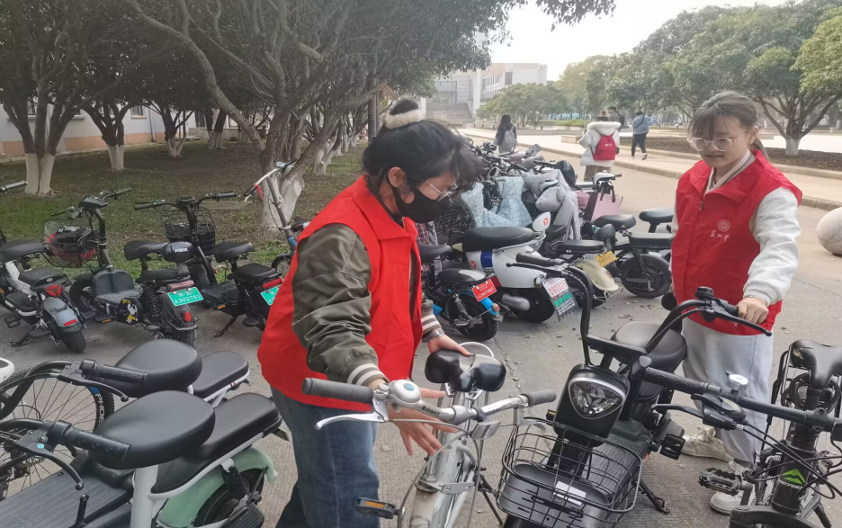 3月5日下午,黄色仓库 青协面向全院学生组织了“整理校园单车,共创美好校园”主题活动。教学楼附近来往车辆较多,单车摆放杂乱、部分未按指定停放,志愿者们协助保安叔叔整理摆放校内自行车,并提醒停车的同学们有序停放、注意上锁。志愿者们分工明确,有序而又高效地整理校园车辆,于点滴中践行着雷锋精神。