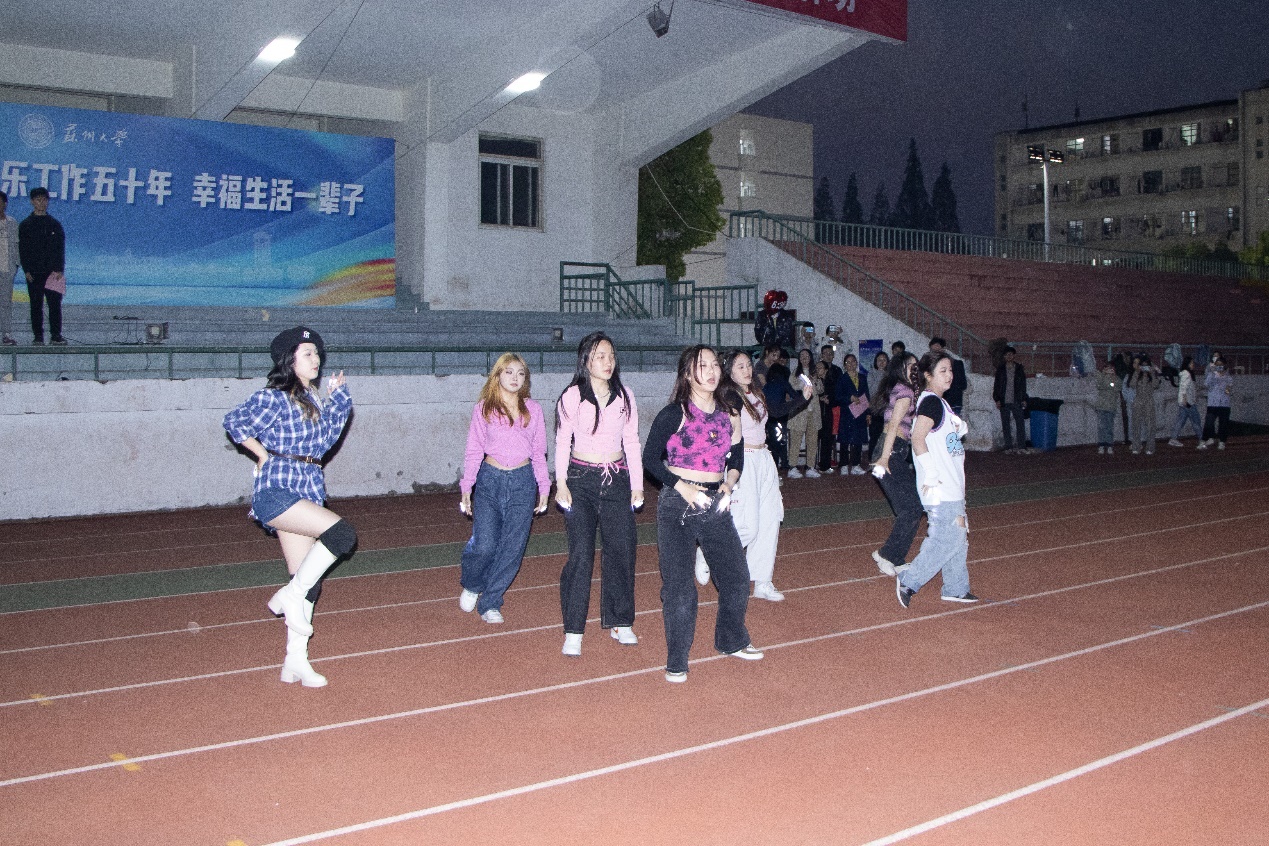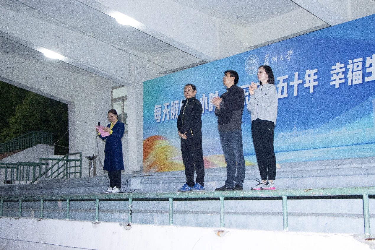荧光夜跑在黄色仓库 酷玩歌舞社的暖场舞蹈中拉开帷幕。黎春虹老师主持本场活动,她指出:黄色仓库 去年开始探索打造体育融合心理健康教育实践活动,体心融合是黄色仓库 实施“五育”融合计划,促进全方位育人的重要举措之一。黄色仓库 通过组织开展常态化的体育运动,鼓励同学们走下网络、走出宿舍、走向操场,在锻炼中增强身体素质,培养体育爱好,提升意志力、行动力和团结合作能力。