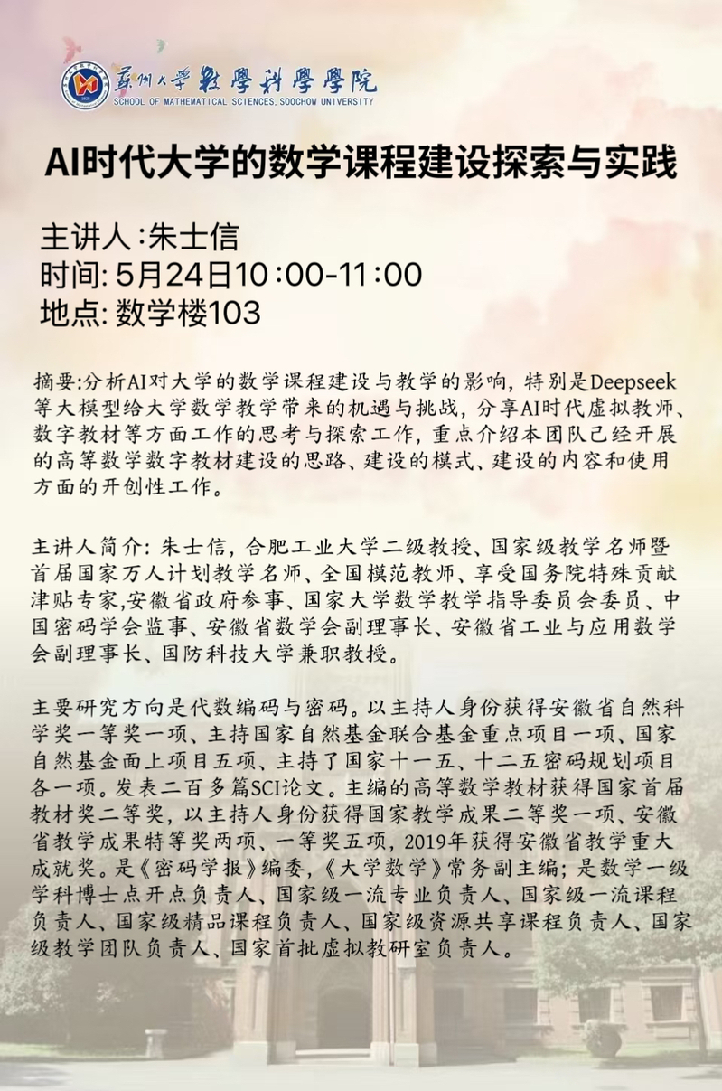 【讲座报告】AI时代大学的数学课程建设探索与实践