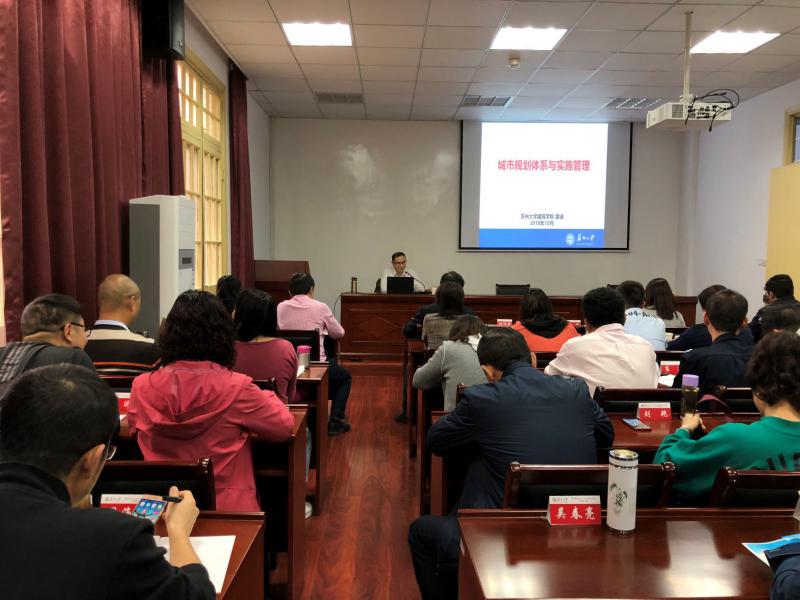 本次培训包括《中外优秀景观案例解读》、《城市规划原理(一)》、《城市规划原理(二)》、《苏州工业园区规划建设介绍》《苏州城乡一体化实践与探索》、《城乡规划与产业结构》等多个课程和讲座主题,并前往苏州市规划展示馆、博物馆参观,及完成了对苏州工业园区规划建设实地调研,取得了良好的学习效果。