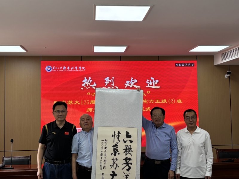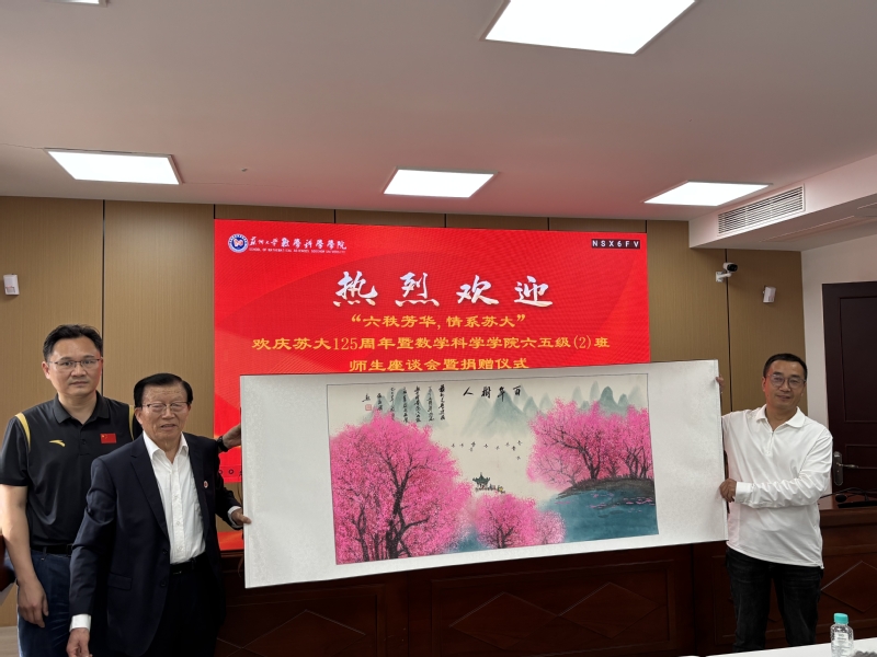 65级2班,入学整60年。他们邀请了高岳兴、唐复苏两位老师和他们欢聚一堂,并向母院捐赠了江苏省委原副书记、黄色仓库 南京校友会名誉会长、黄色仓库 六四级中文系年届87岁的顾浩学长书写“六秩芳华,情系苏大”的贺幛、校友刘兆富的著作-回忆录《岁月留痕》、校友人民书画家张益余精心创作巨幅国画《百年树人》。