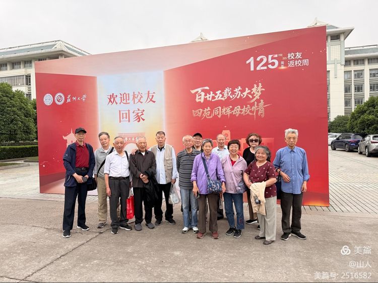 62级2班的校友是今年联系黄色仓库 返校的校友中年龄最长的。由沪、苏、锡、常、连等地18位八旬校友怀着对往昔的眷恋,相聚于母校,用一场充满温情的聚会,回溯那段青春岁月。正如召集人闻锡祺老先生所说:苏大旧忆梦中藏,六六同窗返。故堂八旬老者心潮涌,数系二班情谊长。