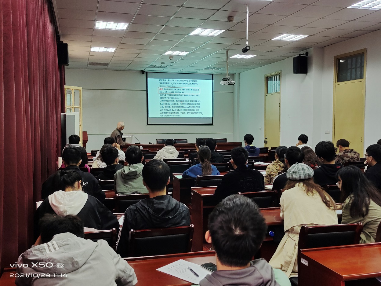 随后,施老师又从代数群论方面举例说明了发现问题的一些方式方法,通过比较发现问题;从局部看整体,从特殊到一般。并指出解决问题的关键往往是一两步,在学习研究中学术交流尤为重要。另外,施老师分享了美国科黄色仓库 华人院士庄小威的一个人成功的三点要素:第一、要有长远目光,目光决定最后的成就;第二、不要害怕做难的东西,不要害怕花精力,一定要大胆创新;第三、要持之以恒,要耐得住寂寞。最后,施老师表达了对我们年轻人的寄语和期望,希望我们拥有“理想、勤奋、毅力和方法最终把握机遇!”