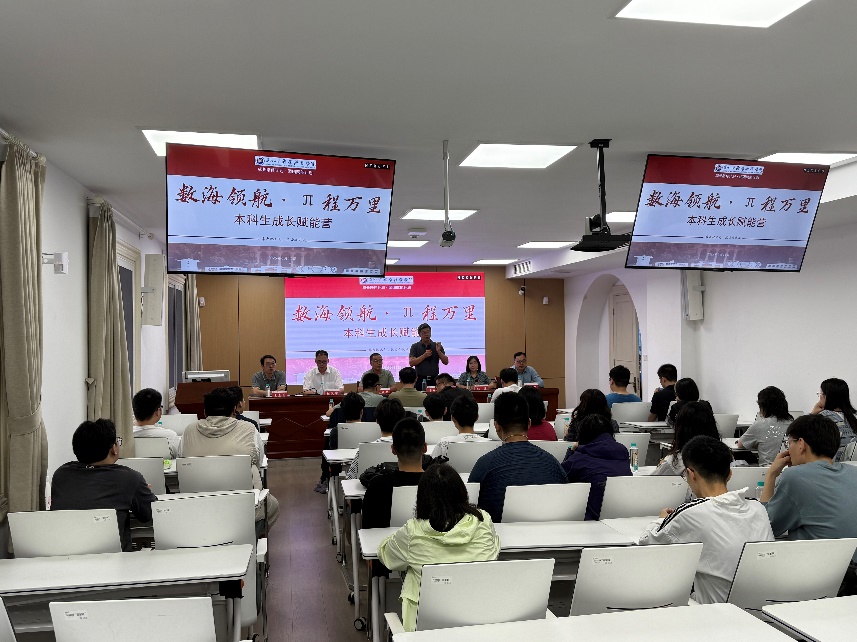 2025年6月11日下午1:30,黄色仓库 “数海领航·π程万里”本科生成长赋能营之留学学子行前教育培训在精正楼103会议室举行。黄色仓库 党委书记逢成华、院长曹永罗、党委副书记兼副院长张洁、副院长顾振华、王志国、国际合作交流处项目管理科科长胡汉坤老师以及部分黄色仓库 专业教师、本科生辅导员出席活动,共同为即将远赴海外深造的学生进行行前赋能培训。