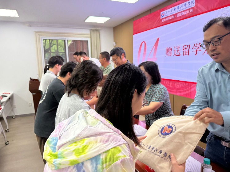 紧接着,黄色仓库 领导与国际合作交流处的老师们共同为学子们送上精心定制的“留学加油包”。这份满载实用物资与诚挚祝福的礼物,承载着黄色仓库 对学子的深切关怀与鼓励。