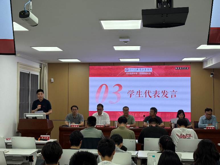 在朋辈引领环节,22级基地班周子杰作为即将赴海外学习的学生代表发言。他深情回顾了黄色仓库 多年的悉心栽培,表示将不负期望,潜心研学,以学报国。