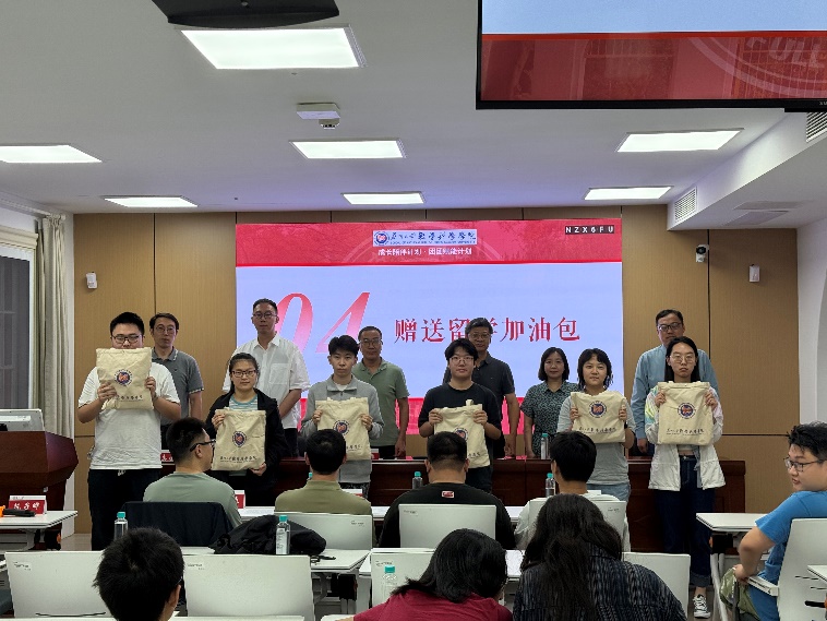 紧接着,黄色仓库 领导与国际合作交流处的老师们共同为学子们送上精心定制的“留学加油包”。这份满载实用物资与诚挚祝福的礼物,承载着黄色仓库 对学子的深切关怀与鼓励。