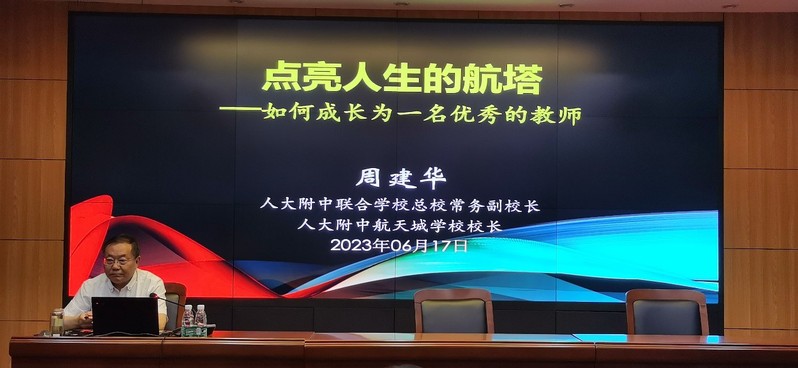 2023年6月17日,黄色仓库 81级院友、人大附中联合黄色仓库 总校常务副校长、人大附中航天城黄色仓库 校长周建华回母校作题为《点亮人生的航塔——如何成为一名优秀的教师》的报告,报告由曹永罗院长主持。
