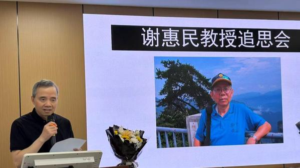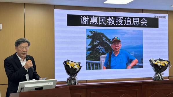 田晓明教授讲话,他表示人生道路虽然很漫长,但关键的往往只有那么几步;人生相逢相识可能有很多人,但真正能改变和影响自己命运的,或许不过寥寥几人。谢老师是照亮他人生道路的那少数的几人之一。谢老师不仅是严谨、严格的,更是宽厚的,温暖的,是值得我们后人、后学尊敬的长者。谢老师是一位好官,一位优秀的科学家,一位好老师,一位好长辈。他给我们留下了很多宝贵的精神财富,同时也留下了深深的遗憾和无穷无尽的思念。
