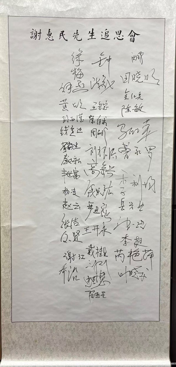最后,全体与会者在纪念挂轴上签名留念。