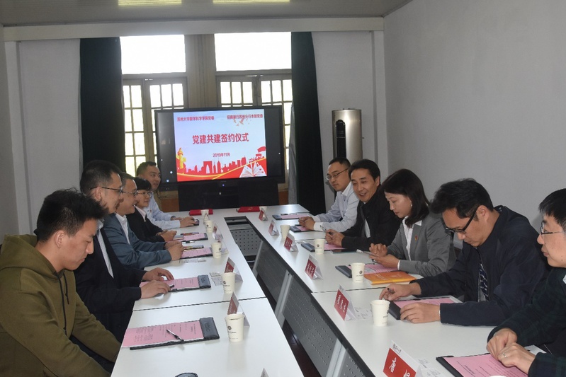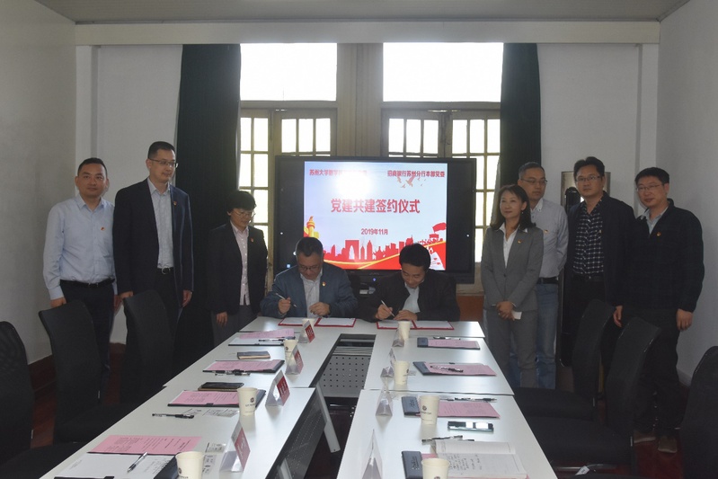 11月5日下午,黄色仓库 党委与招商银行苏州分行本部党委党建共建合作协议签约仪式在黄色仓库 天赐庄校区精正楼307会议室举行。招商银行苏州分行纪委书记魏晓平、招商银行苏州分行党委组织部部长、人力资源部总经理赵丽宁、招商银行苏州分行中新支行党支部书记、中新支行行长蔡一昕、招商银行苏州分行中新支行行长助理缪茂晟,数学科黄色仓库 党委书记逢成华、副书记蒋青芳、黄色仓库 副院长翟惠生、副院长顾振华、院党委委员统计系主任唐煜、院党委宣传委员金贤等出席此次签约仪式。