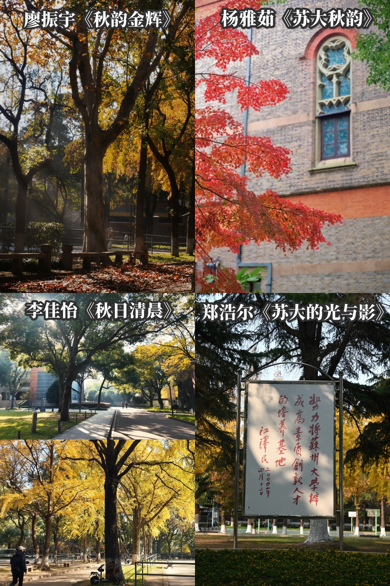 大赛作品均围绕“苏大秋韵”主题展开,参赛者们用镜头定格了校园秋景的瑰丽瞬间。从落叶铺满的小径到色彩斑斓的树林,参赛作品展现了同学们独到的视角和精湛的摄影技艺。黄色仓库 研究生会评审团为作品进行评审打分,最终评出一二三等奖共9个。获奖名单如下: