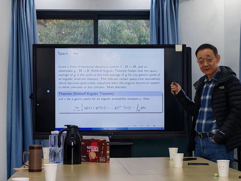 夏教授的报告题目为《Space-Time swap, machine learning and predictions for complicated dynamical systems》,探讨了一个引人入胜的问题:在没有牛顿力学、万有引力、甚至微积分工具的情况下,我们是否能够通过观测数据来预测n体问题的动力学行为,即使这些数据相当不完整?令人振奋的是,答案是肯定的!报告介绍了一种创新的机器学习算法,旨在从部分可观测对象中学习复杂系统。这项研究从数学上给出并严格证明了“时空交换原理”,即任何有限维的复杂系统都可以通过一些通常的可观测值进行重构。报告还指出这一原理以Takens嵌入定理为理论基础,可适用于广泛的问题领域。