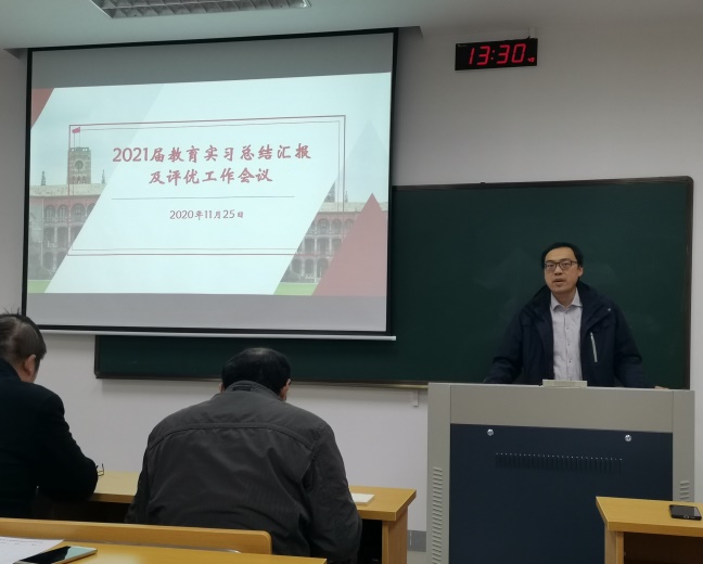 会议最后,严亚强老师就本次会议中同学们的汇报提出建议,指出在汇报总结时,我们不能只关注自身,还要学会发掘实习指导老师的优点,这一点是我们目前同学们做得不到位的一点。