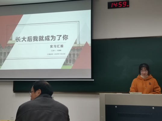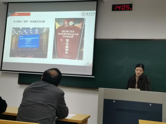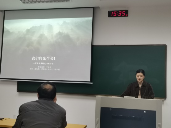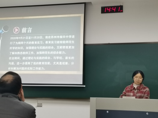 在校级优秀实习生的评选环节中,徐敬元、戴乐萱、陈子怡、俞鸿飞、严珮锦、孔雯晴等六位同学分别对自己两个月的实习工作进行了总结汇报。可以看出,每位同学在实习期间,在数学教学工作、班主任工作以及班级活动等方面,都贡献了自己的力量,收获颇丰。实习指导老师就每位同学的汇报与每位同学进行了深入的交流探讨,了解实习生与实习黄色仓库 的情况。