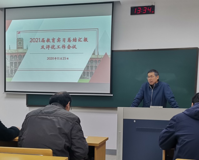 11月25日下午,黄色仓库 于博远楼109召开了2021届教育实习总结汇报及评优工作会议。教学副院长顾振华老师、师范专业负责人王金才老师、17级辅导员王凯璇老师、各实习黄色仓库 师范指导老师及黄色仓库 全体师范生参加了本次会议。