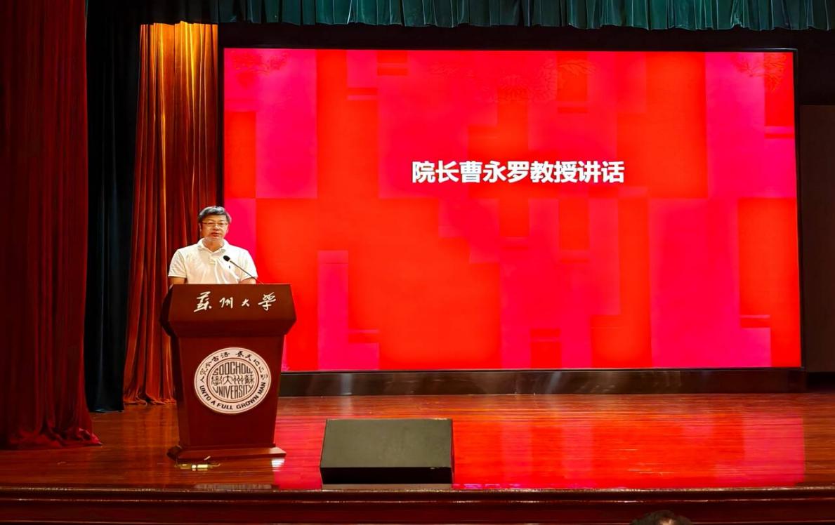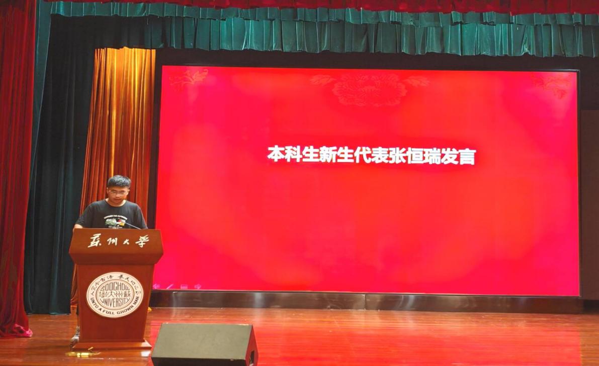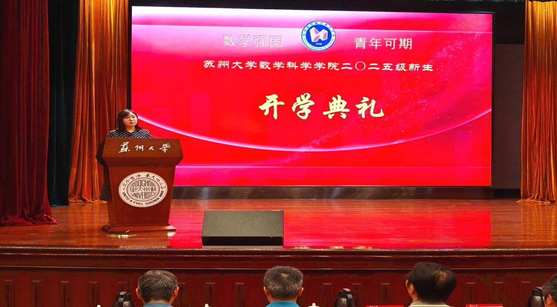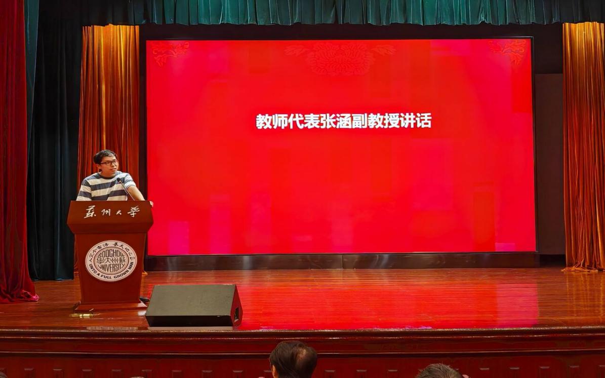 张涵老师作为教师代表,与新生们分享了对数学之美的独特见解与宝贵的学习锦囊。他指出,数学之美不仅在于公式的优雅,更蕴含在与难题较量的每个深夜和草稿纸上。他结合自身经历,赠予新生三个锦囊:让提问成为本能、用交流对抗孤独,并特别强调在AI时代培养终身学习习惯的至关重要性。最后,他深情祝愿同学们在苏大度过充实快乐的四年,不仅能收获知识与思维,更能珍藏美好回忆,并始终保有初探数学世界时的那份纯粹心跳。