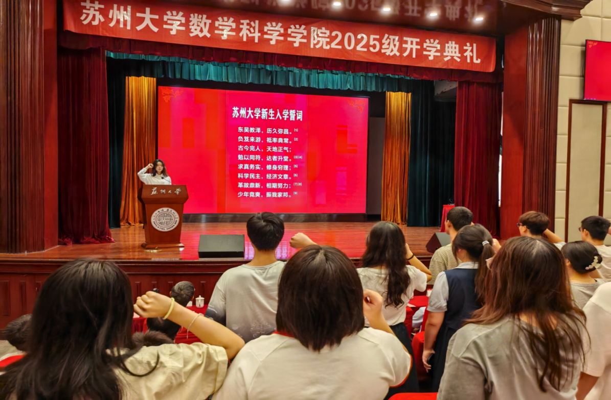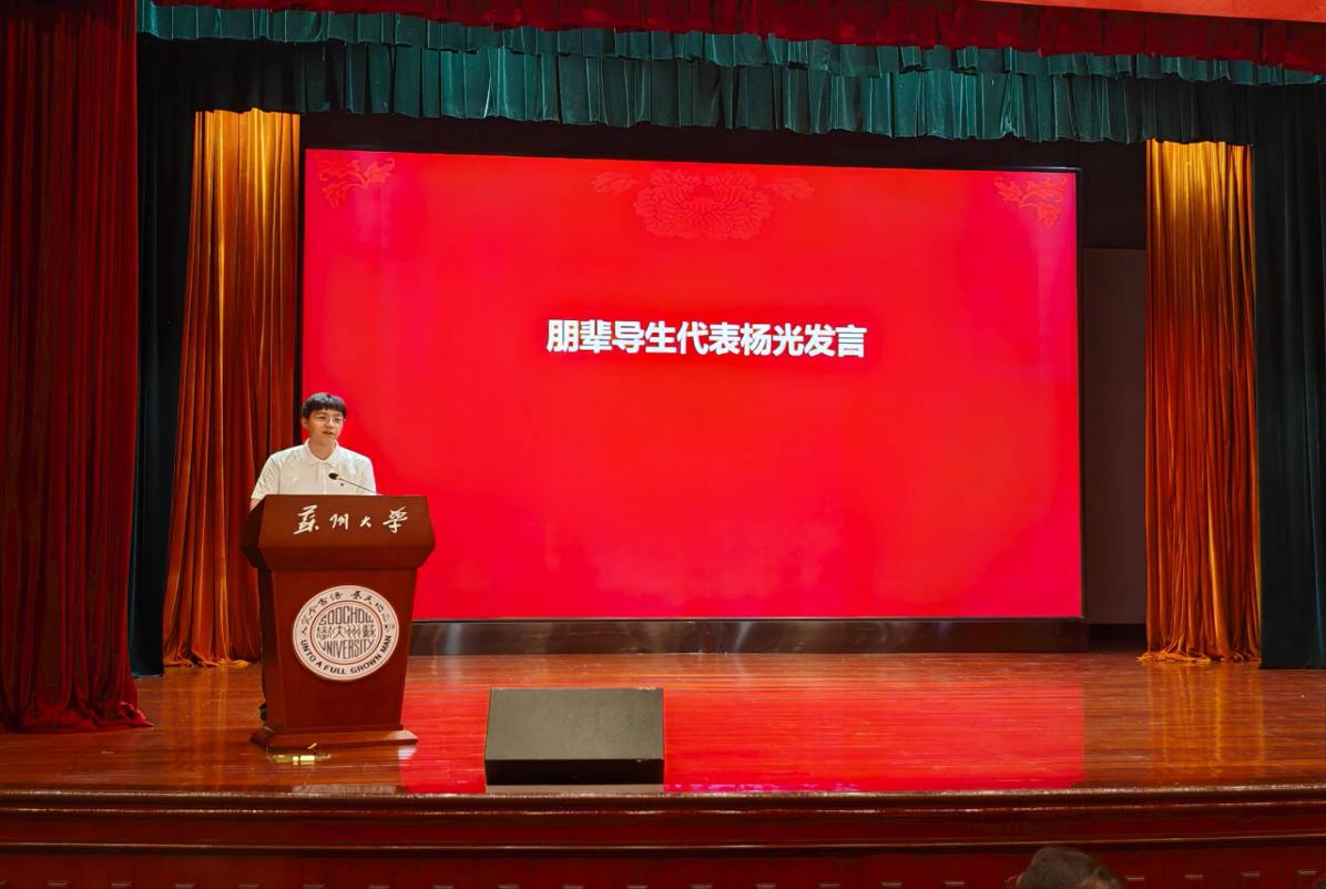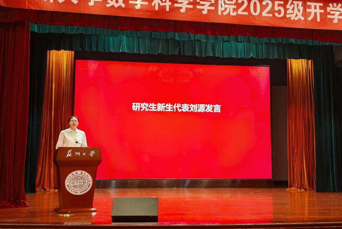 研究生新生代表刘源在发言中,首先回顾了促使大家选择继续深造的朴素初心——那份对数学精妙证明的心驰神往、对探索未知的好奇与执着。她指出,未来的研究生学习将是一次重要蜕变,意味着从知识接收者转变为知识边界的探索者。面对挑战,她倡议全体新生主动融入学术氛围,既要弘扬“板凳甘坐十年冷”的专注和坚韧,也要葆有“敢向无人区进军”的勇气和魄力,携手在苏大数科院的沃土上,书写属于新一代的科研篇章。