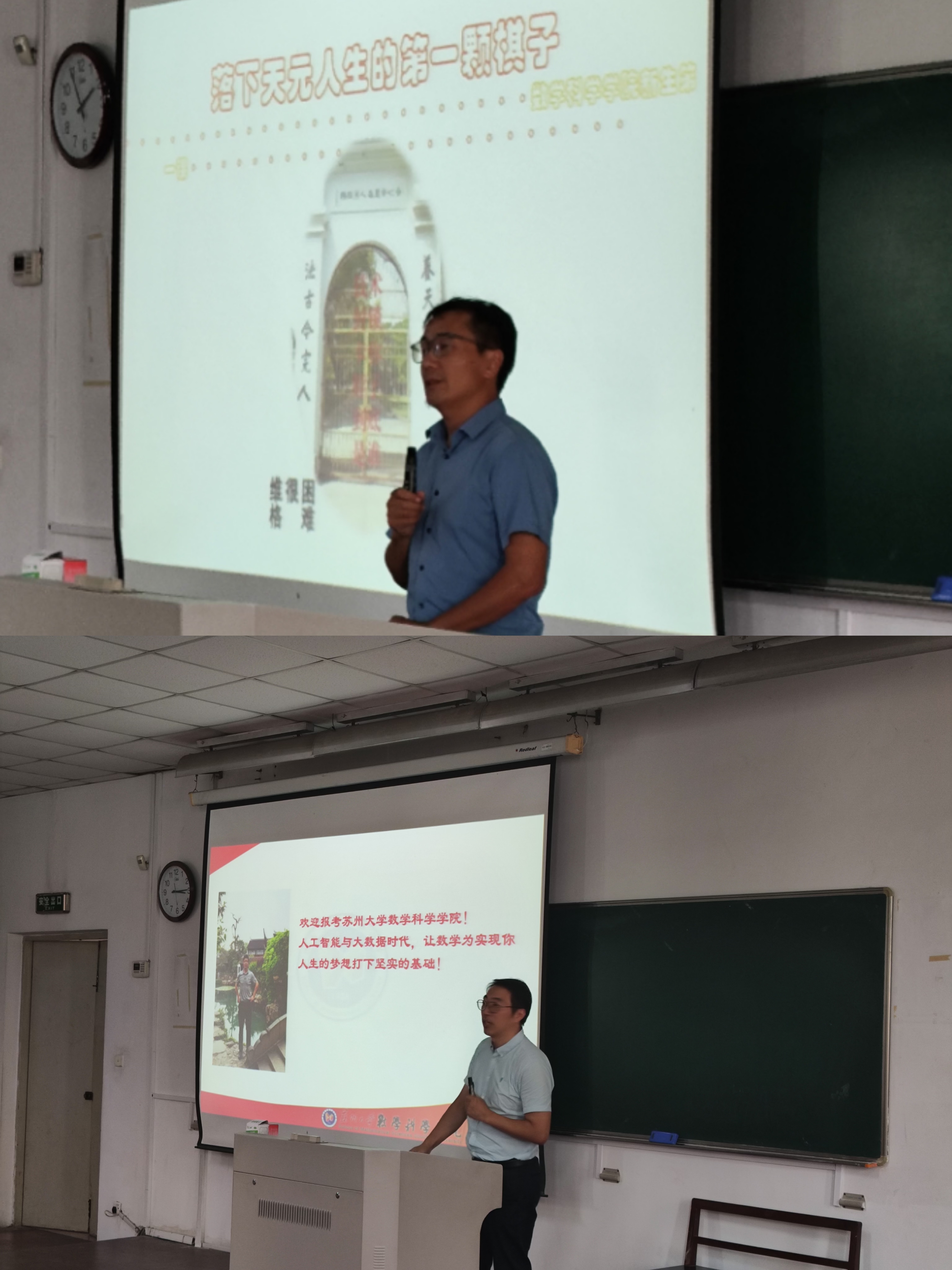 党委书记逢成华和党委组织委员乔治一起合作,以“落下天元人生的第一颗棋子”为主题,以黄金分割对书法艺术的影响为例,讲述了数学里的中国核心价值以及中国数学对世界的贡献,给研究生新生上了开学第一课。副院长王志国介绍了黄色仓库 的悠久历史,雄厚的师资和突出的科研情况,解读学位点分布和学科建设以及学位培养方案,使研究生们对黄色仓库 有了更深入的了解。