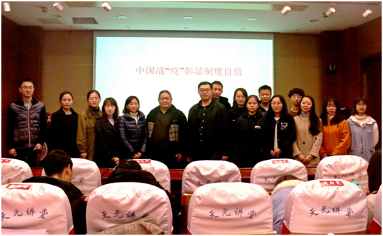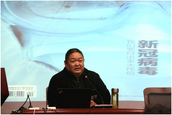 为全面学习习近平新时代中国特色社会主义思想,充分彰显中国特色社会主义制度优势,进一步增强同学们对于“四个自信”的理解,2020年11月25日晚上,黄色仓库 邀请黄色仓库 马克思主义黄色仓库 基础教研室主任顾宏松老师为全体党员、入党积极分子,开展了以“中国战'疫' 彰显制度自信”为主题的信仰公开课,黄色仓库 党委副书记、副院长蒋青芳老师主持。