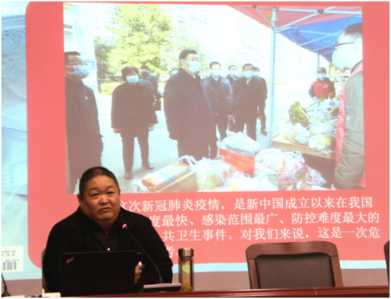 他用医护人员逆行出征、党员干部社区执勤、人民群众互相帮助等鲜活实例,为大家勾勒出了一幅幅生动的全民战“疫”画卷,同时通过抗击疫情过程中中国和其他国家在反应速度、采取措施以及思想观念等方面的横向对比,进一步阐释了中国特色社会主义制度的优越性,并号召全体同学在新时代中始终坚定理想信念,勇于担当作为。