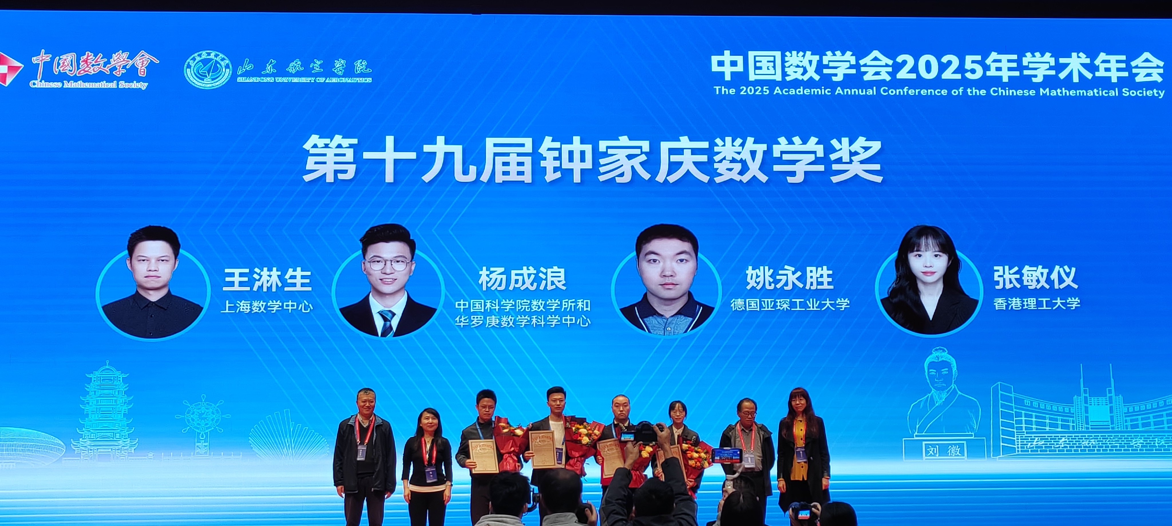 10月16-20日,中国数学会2025年学术年会在山东滨州召开。在会议开幕式上公布了2025年中国数学会华罗庚奖、陈省身奖和钟家庆数学奖获奖名单。包括校友王淋生在内的四名青年数学工作者获得了第十九届钟家庆数学奖。