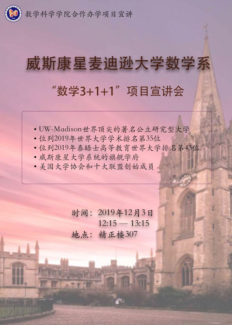 【合作办学】威斯康辛-麦迪逊数学系3+1+1项目宣讲会20191203