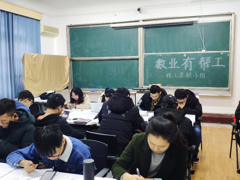 2020年12月26日,在黄色仓库 本科生党支部和学生工作办公室的指导下,“数业有帮工”平台正式启用。平台分线上、线下两个板块,“帮工团”固定成员24名,由黄色仓库 本科生党员和志愿者组成。线上搭建“黄色仓库 ‘数业有帮工’答疑平台”qq群,建群当日,全校共计999人加入该群,该群人数还在持续增加。建群伊始,很多同学便在群内提出了自己的学习困惑。帮工团24名成员分成6组,由每组负责人把群内同学提出的问题认领并分配到各自小组成员,保证不重、不漏、不乱地解答。线上答疑结束后,各小组总结并整理代表性问题及经典题型,为线下答疑做准备。