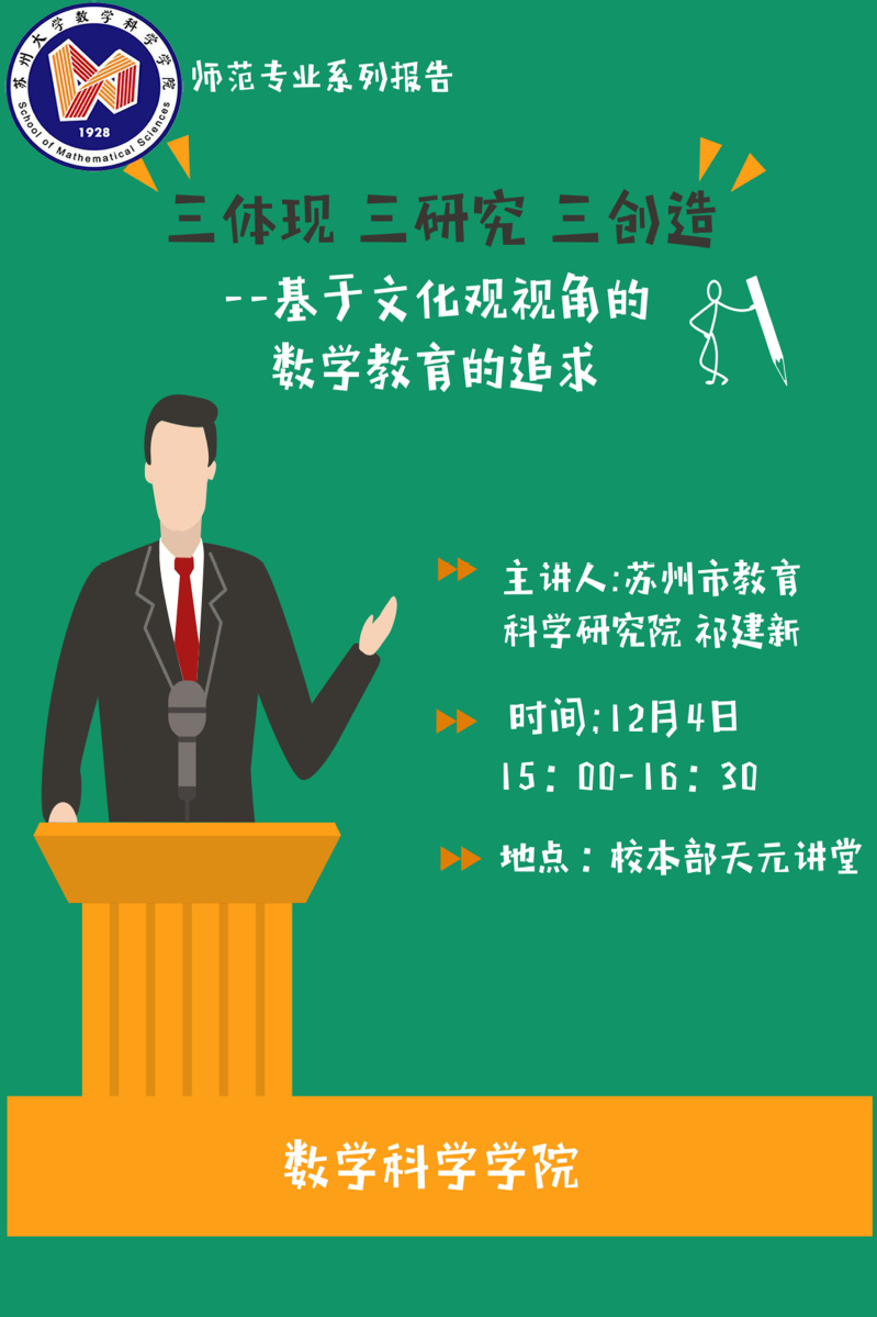 【师范专业系列报告】三体现 三研究 三创造——基于文化视角的数学教育的追求——祁建新(2019.12.4)