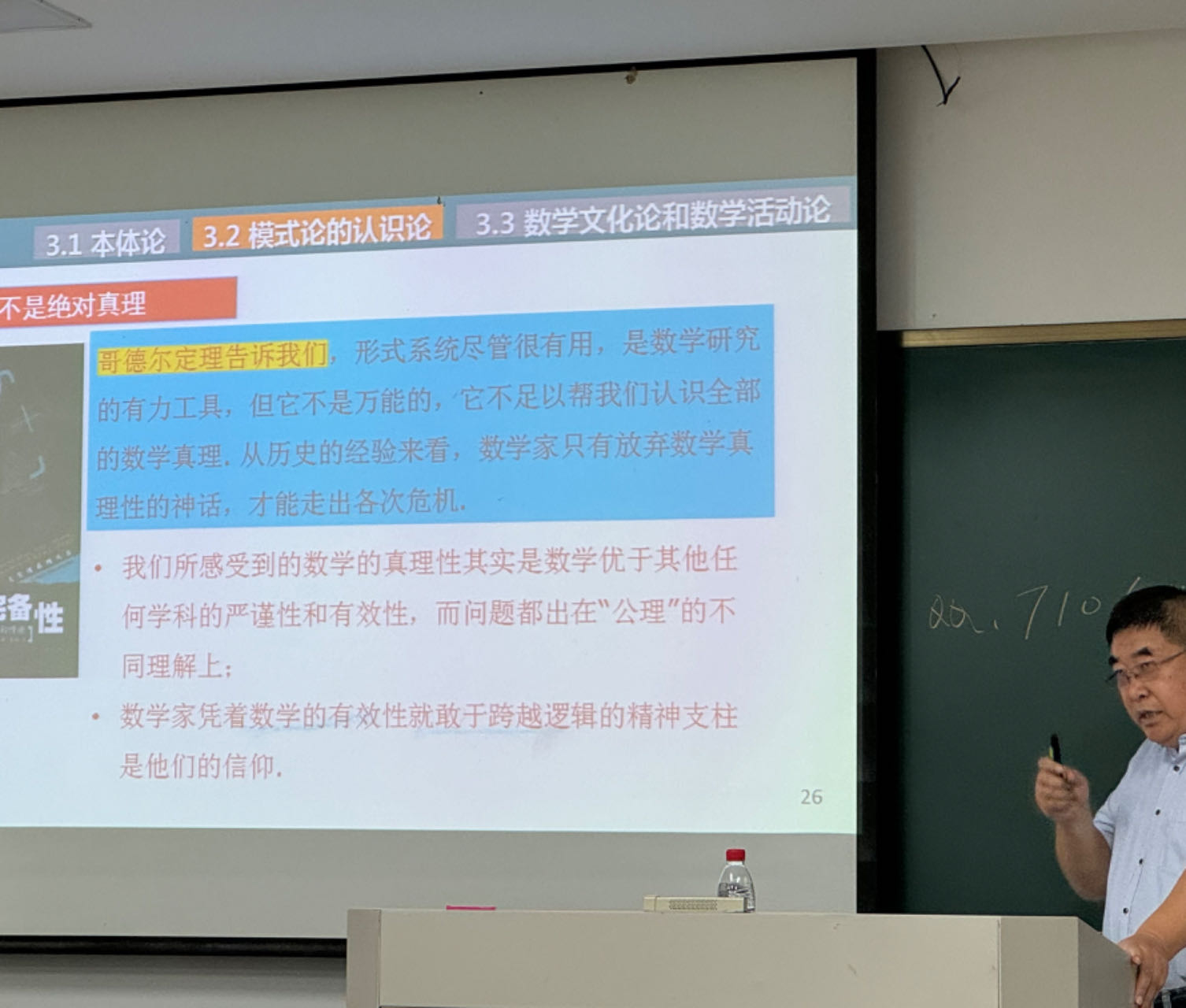 严亚强老师首先由对一次观课议课活动的思考引入课程,着重介绍了数学思维、特性及其发展的一般途径,继而谈到了数学模式论、文化论和活动论的概念及其教育启示。最后严老师还提及了数学教育的德育价值,包括一个基点、三个维度和六个层次,鼓励大家通过人文精神、科学素养、道德品质寻求真正的数学,发现数学教育中蕴含的真、善、美及其哲学价值。严老师强调,数学之美体现在外形之美、内容之美和灵魂之美,号召全体研究生同学把树立正确的数学学习观念视为振兴民族的道义的要求,不断学习、探索。