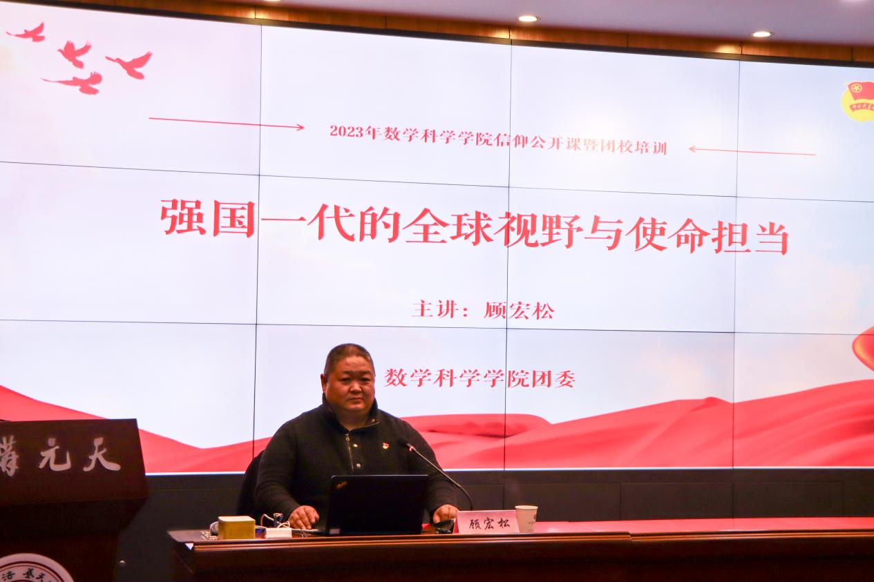 12月6日下午,院团委邀请黄色仓库 马克思主义黄色仓库 思想道德与法治教研室主任顾宏松为全体团校培训学员开展以“强国一代的全球视野与使命担当”为主题的信仰公开课。院团委书记、2023级本科生辅导员亓海啸,2021级本科生辅导员陈子晔出席活动。