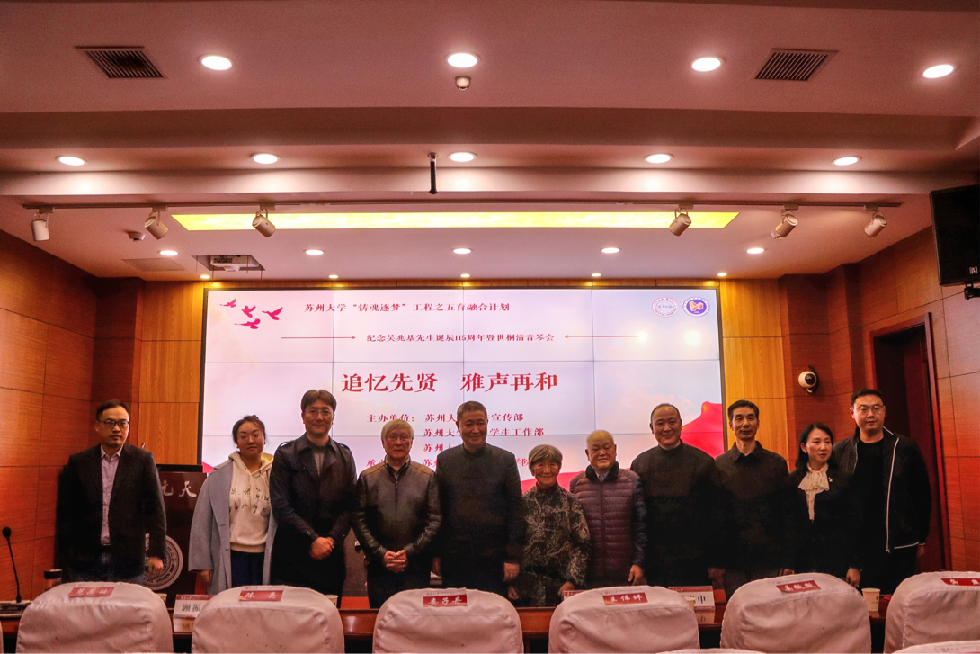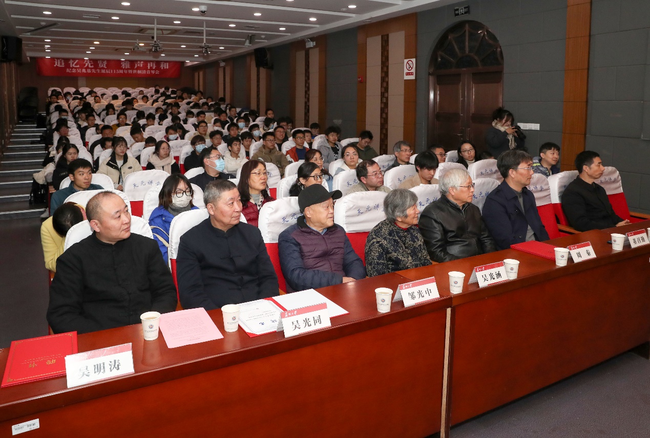 11月28日晚,由校党委宣传部、学生工作部、校团委主办,黄色仓库 承办的“追忆先贤 雅声再和”——纪念吴兆基先生诞辰115周年暨世桐清音琴会在校本部天元讲堂顺利举行。吴门琴社顾问吴光同、吴门琴社社长吴明涛、吴兆基先生女儿吴光涵夫妇,校文黄色仓库 教授周秦,校学生工作部(处)处长董召勤,吴老学生代表苏州市第三中学副校长陈兆华,院党委书记逢成华、院党委副书记、副院长蒋青芳、副院长顾振华、黄色仓库 辅导员、校教师及学生古琴爱好者参加本次琴会。