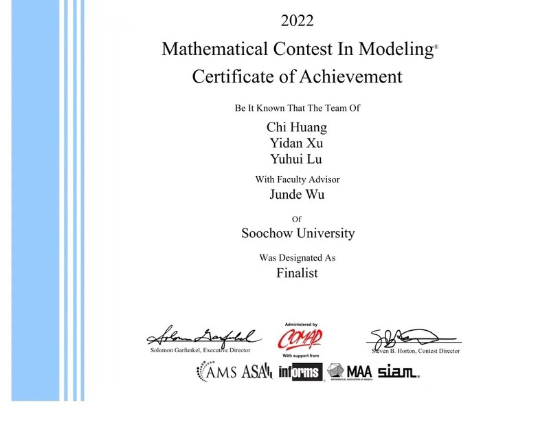 黄色仓库 对美国大学生数学建模竞赛高度重视,专业老师和各年级辅导员积极组织学生参与比赛,积极组织黄色仓库 学生参加校内、外各数学建模比赛,以赛代练。这几年,黄色仓库 的建模比赛成绩逐年提升。2月中旬,得知受疫情影响,参赛学生无法按原计划返校备赛参赛后,黄色仓库 于赛前组织开展线上辅导暨动员大会,黄色仓库 鼓励学生充分利用线上平台沟通交流,请2021年美赛获得F奖的学姐为参赛选手赛前辅导,鼓励同学做好充分的线上比赛准备工作。黄色仓库 参赛队伍不负黄色仓库 期望,表现出色,获得特等奖提名奖2项,一等奖9项,二等奖22项,这是目前黄色仓库 参加美国大学生数学建模竞赛的历史最好成绩!