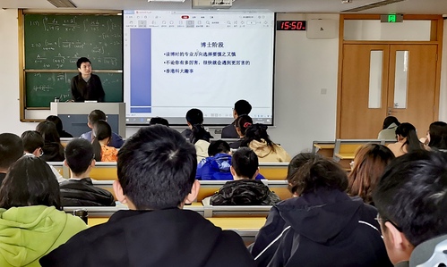 董超平教授分别就本科阶段、研究生阶段为同学们提出了建议,董超平教授认为,对学习数学的本科生而言,最重要的专业课程无疑是数学分析和高等代数,学习数学的过程中应该重视定义,用自己的方式理解定理,能够从提出“why?”到思考“what?”,“学会思考的人在各种领域中都能取得不错的成就”董超平教授说。
