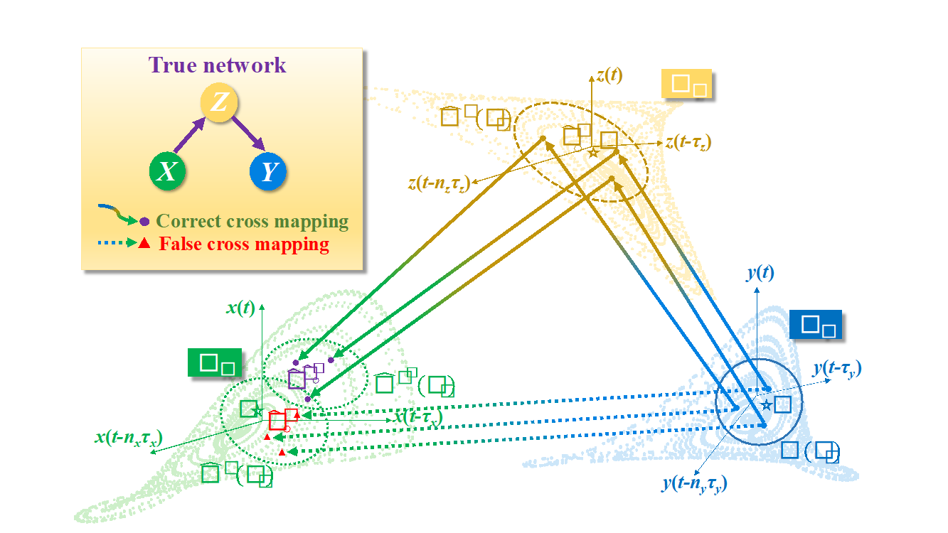 传统基于统计学和信息论的因果分析方法,如格兰杰因果关系、传递熵等方法,需要变量因素之间具有可分性条件,即需要将原因信息从结果信息中分离出来。然而在现实世界中,特别是非线性复杂动力系统所产生的多维度时间序列中,这样的可分性条件无法得到满足,因果机制往往交织在同一个时间序列之中。另一方面,由于因果关系在多变量之间的传递性,而直接因果关系才能反映现象之间本质的内在互作机制。因此发展有效可靠算法,区分复杂动力系统中的直接与间接因果,也成为了重要科学问题。面向这些问题,本项研究利用动力系统理论清晰阐明了可分性条件的严格数学机理,并综合利用相空间重构、交叉映射、偏相关系数等动力学与统计学相关算法,建立了新型偏交叉映射方法,实现了非线性动力系统中直接因果与间接因果的区分,从而为在大规模数据中辨识可信的因果网络提供了可靠算法。该算法已被用于生态系统、环境与疾病互作系统以及基因调控网络等多个实际问题中,成功复现了这些复杂动力学演化系统的内蕴因果网络,为进一步理解系统演化的基本机制提供了方法学基础。