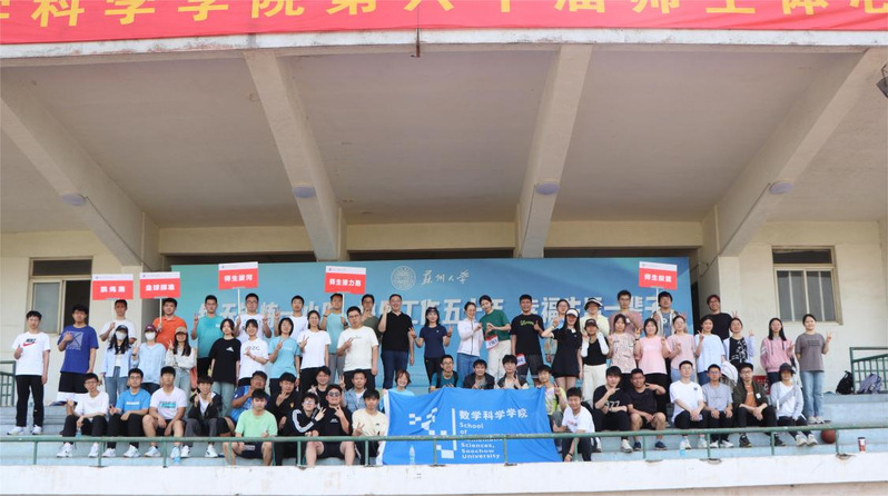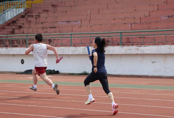 比赛现场气氛热烈,参赛师生热情高涨,师生接力跑活动中,参赛师生配合默契、健步如飞,用奋力奔跑的身影诠释着比赛的速度与激情,最终由2021级数学与应用数学(基地)与数学与应用数学(师范)组成的代表队勇夺第一。