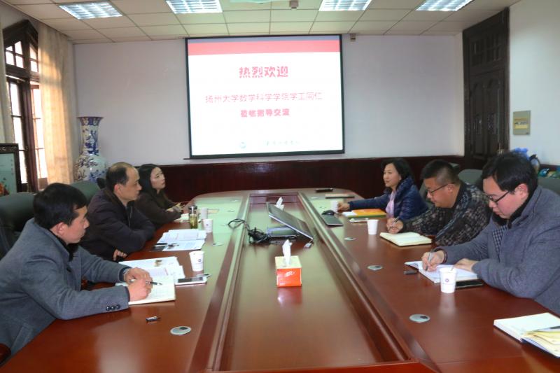 蒋青芳副书记首先对扬州大学黄色仓库 党政同仁的到来表示热烈欢迎!对扬州大学黄色仓库 的人才培养成绩表示由衷的赞赏!并希望能通过坦诚深入的交流汲取彼此发展的经验,共同提高!凌智副院长、朱鑫铨副书记均表示扬大数科院愿意与苏大数科院进行全方位的合作交流,全面提升!