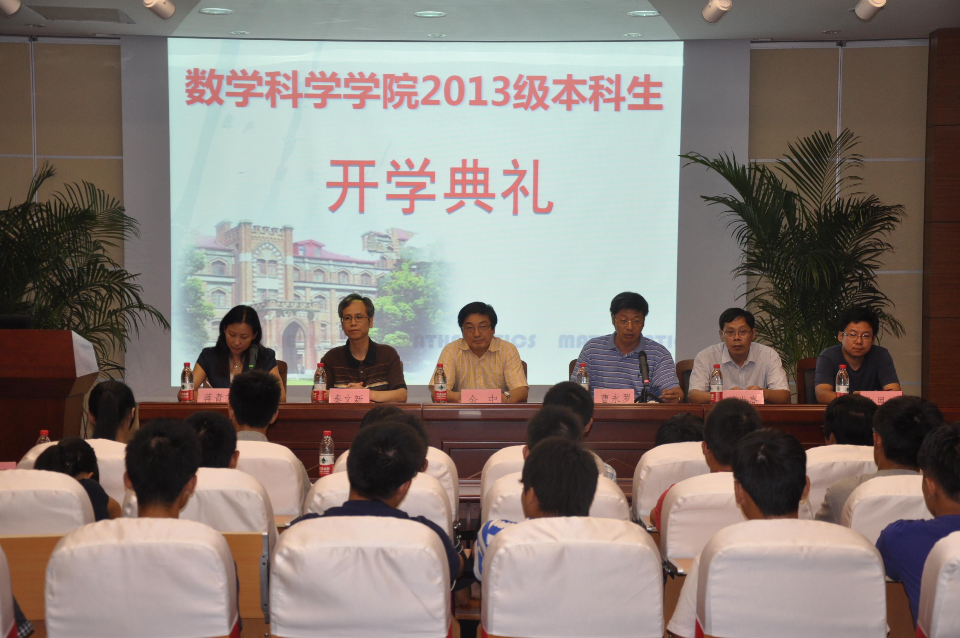 2013级本科生开学典礼在校本部精蕴楼天元讲堂隆重举行。院长曹永罗、院党委书记金中、副院长秦文新、潘洪亮、史恩慧,教师代表王云,全体学工干部,高年级学生代表出席,副书记蒋青芳主持。