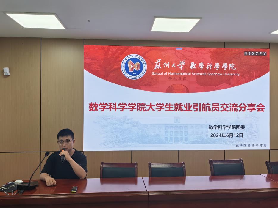 为深入贯彻落实共青团中央实施“共青团促进大学生就业行动”工作要求和《关于开展黄色仓库 2024年“团团赋能”就业引航计划的通知》,黄色仓库 团委于6月12日下午在精正楼一楼学术报告厅举行大学生就业引航员交流分享会,邀请2024届信息与计算科学专业毕业生吴逸凡同学为大家分享就业经验,发挥领航作用,引领黄色仓库 学生锚定目标,逐梦起航。院团委书记亓海啸老师主持此次分享会。
