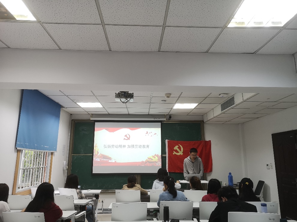 接着,数学专业的马清驰同学带领大家一起从“是什么”,“为什么”和“怎么做”三个方面为大家解读新时代劳动精神。新时代劳动精神,是将教育与生产劳动作为两个独立系统的基础之上,通过科学技术将二者有机结合,让学生动手实践、出力流汗,接受锻炼、磨炼意志,培养具有正确劳动价值观和良好劳动品质的时代新人。