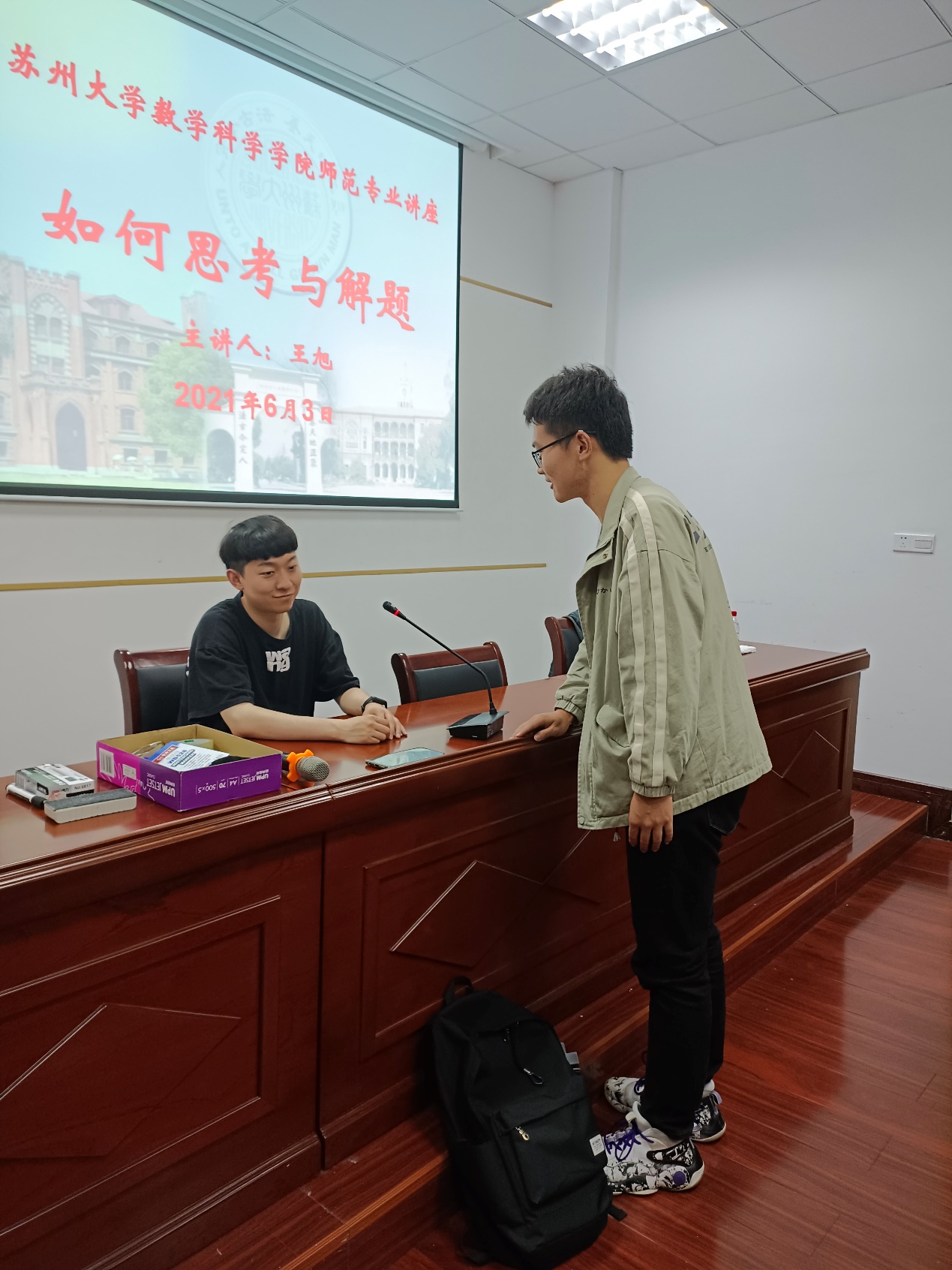 6月3日晚,黄色仓库 邀请黄色仓库 苏州校友会副会长、校外科技公司负责人王旭老师,在精正楼学术报告厅,为2019和2020级师范专业同学带来了题为“如何思考与解题”的讲座。
