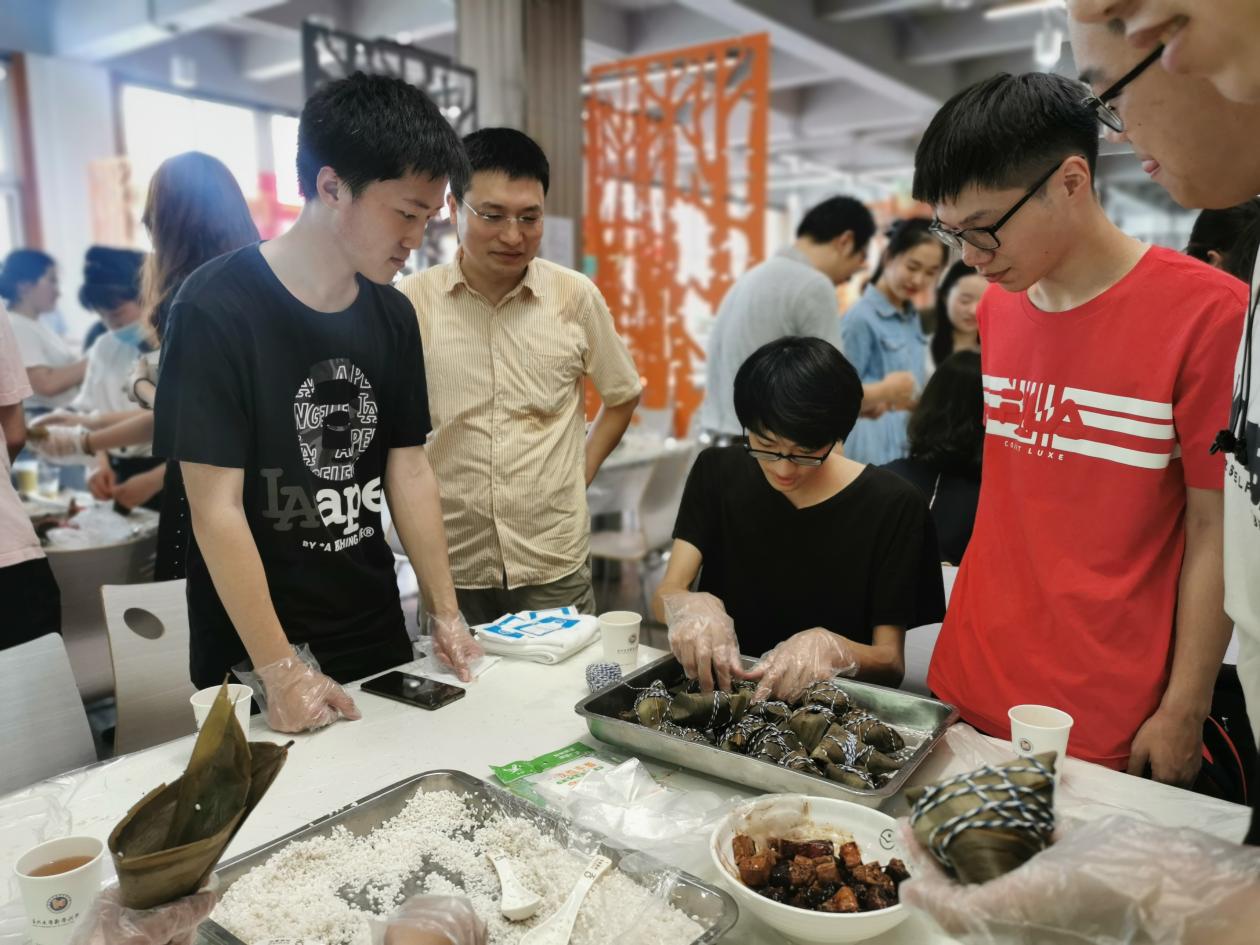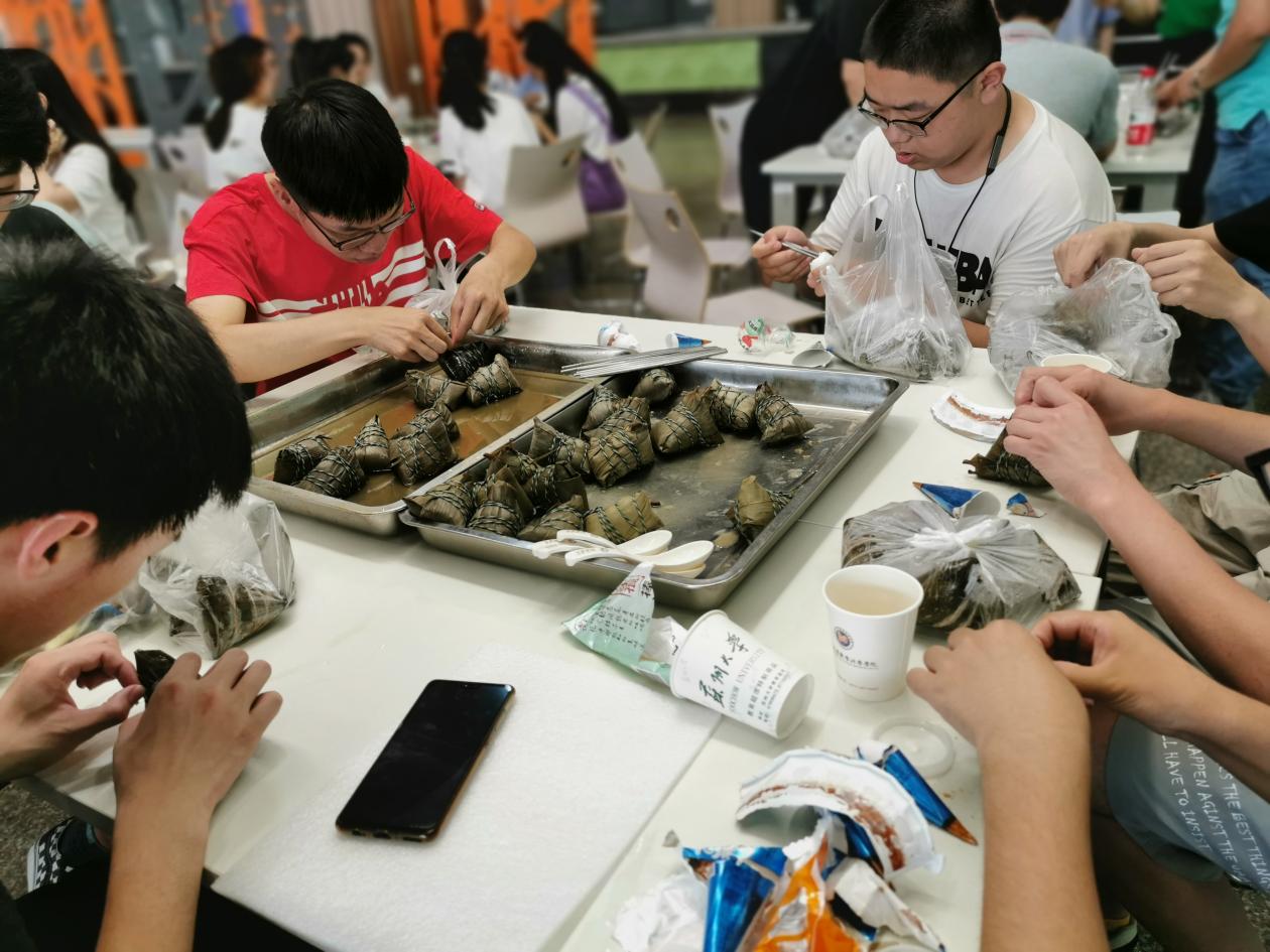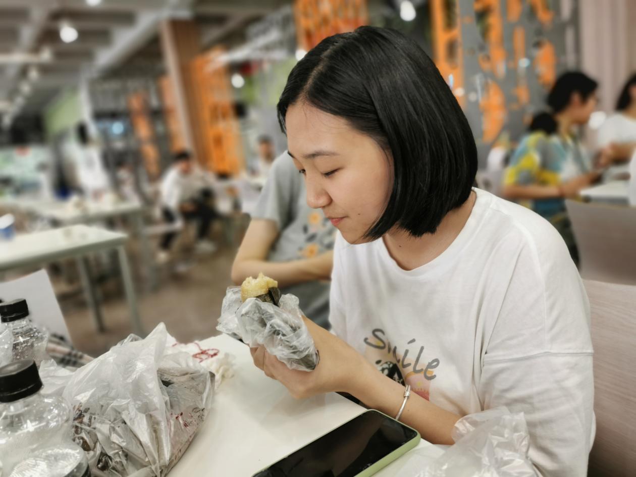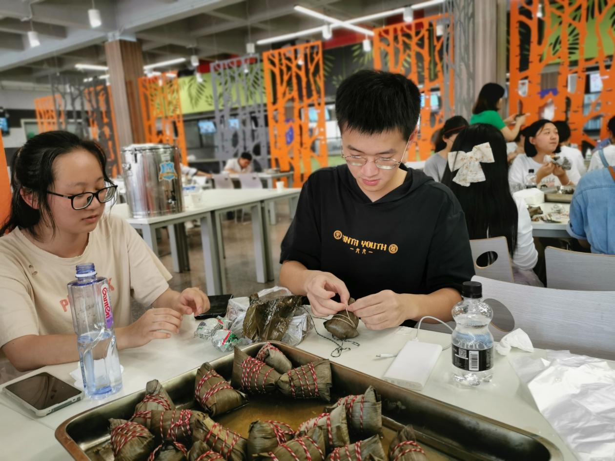 粽子煮好上桌,大家都饶有趣味地寻找带有自己专属符号的私人订制。绳子解开,粽叶剥离,粽叶和糯米特有的香味充盈方塔食堂。大家吃着自己亲手包裹的粽子,交换喂食各钟口味,充分享受着自己的劳动成果,师生互品,其乐融融。