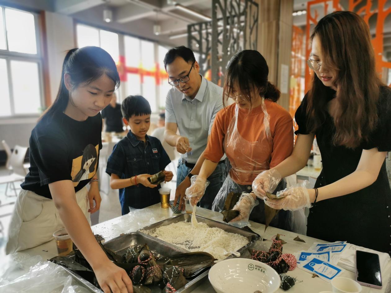 粽子蒸煮的时候,师生们一起泡上顺时养生的姜枣红茶,茶香浓郁,大家通过老师讲解以及微信分享,了解端午时节姜枣红茶有益身心的知识和科学道理,在品味中增长顺时养生的知识,感悟大自然对人的恩赐。也有体热同学泡上一杯绿茶,茶杯浅浅一盈,茶叶梗在翠色的茶水中上下纷飞,好似在一小杯水里赛龙舟。
