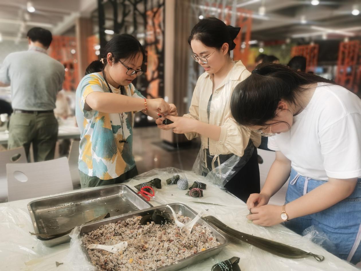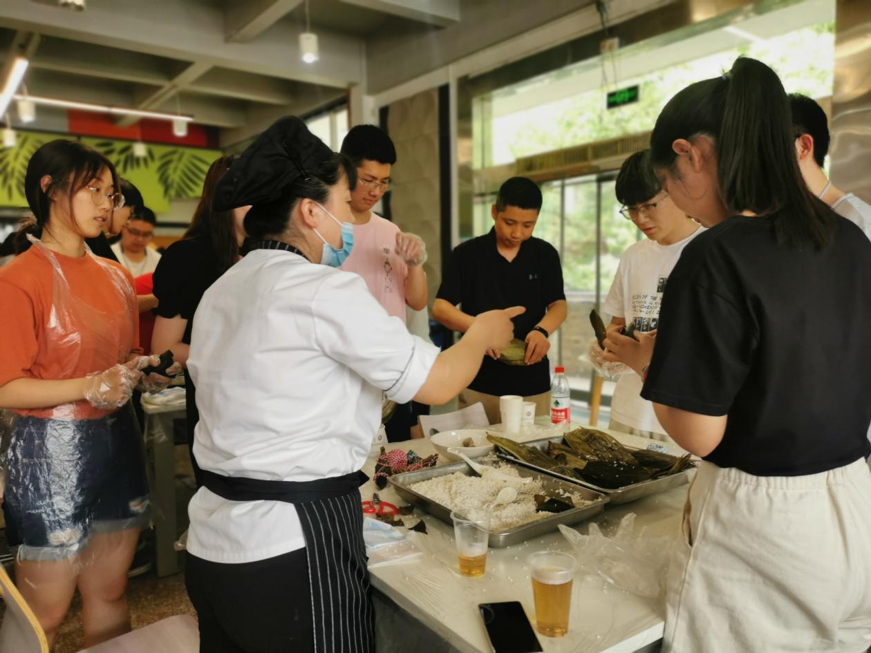 6月14日,黄色仓库 2020级劳动教育骨干团队承办的“粽情蜜意 端午茶香”劳动教育活动在天赐庄校区方塔食堂顺利开展。黄色仓库 70多位师生兴致所至,在双手与粽叶、糯米、姜枣红茶、咸鸭蛋和香囊的亲密接触中,品悟端午时节大自然风物的种种清香,感受岁月的温馨诗意,在美食和诗词中,丰富生活知识,锻炼生活技能,涵养生活情趣,升华生活美学和师生情谊。